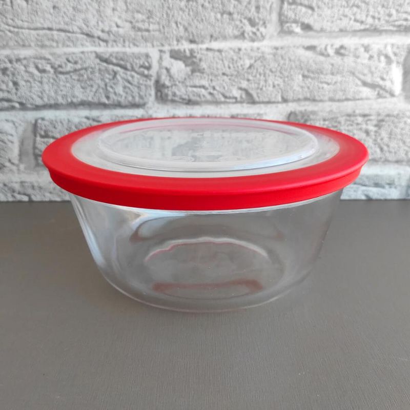 Kit 3 Potes Redondos Tigela De Vidro 1,2l Médio com Tampa Plástica Facilitá Marinex REF: 7797087522930