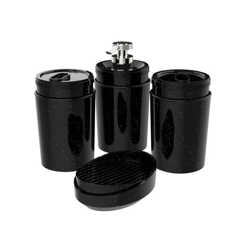 Kit 4 pç Basalto Porta Escova Algodão Sabonete Líquido Barra Stone Crippa Conjunto para Banheiro REF: 7899868313079