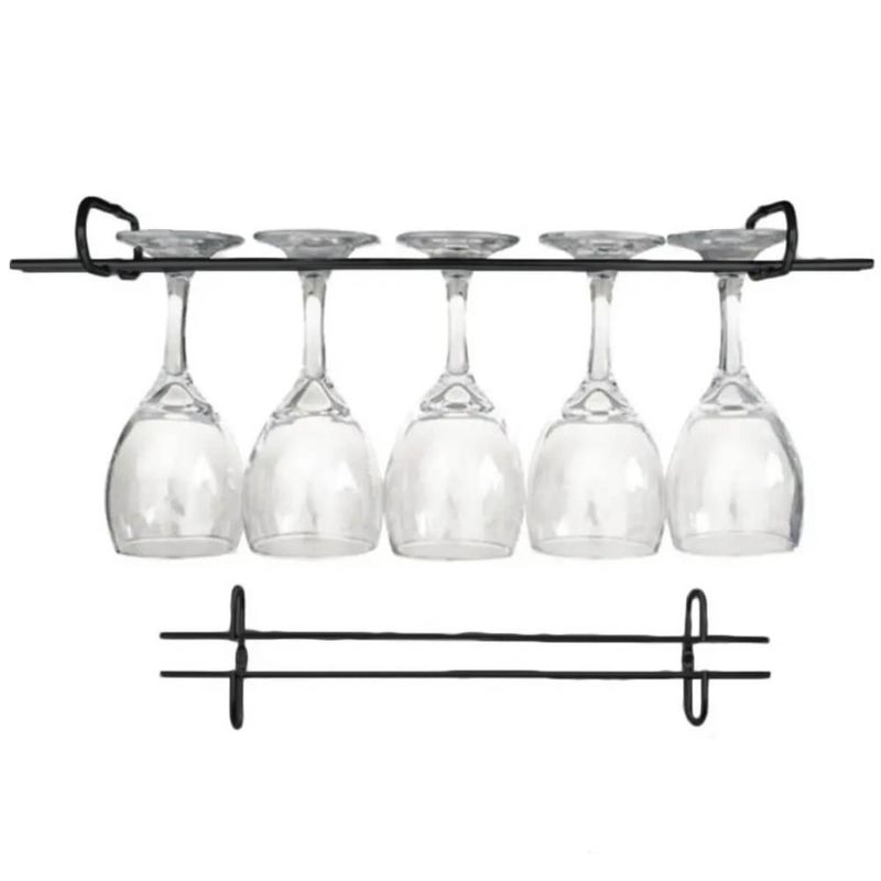 Kit 5 Peças Porta Taças de Teto Preto Fosco Suporte Suspenso para Taças Reto 42cm REF: 7797087643024