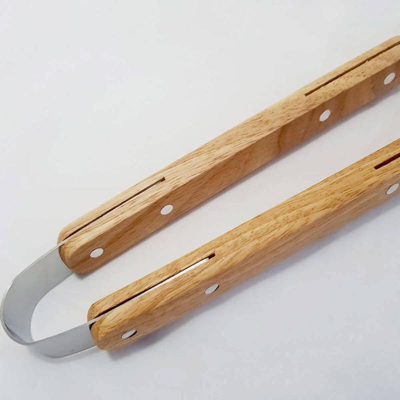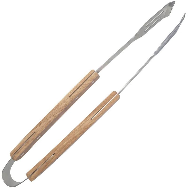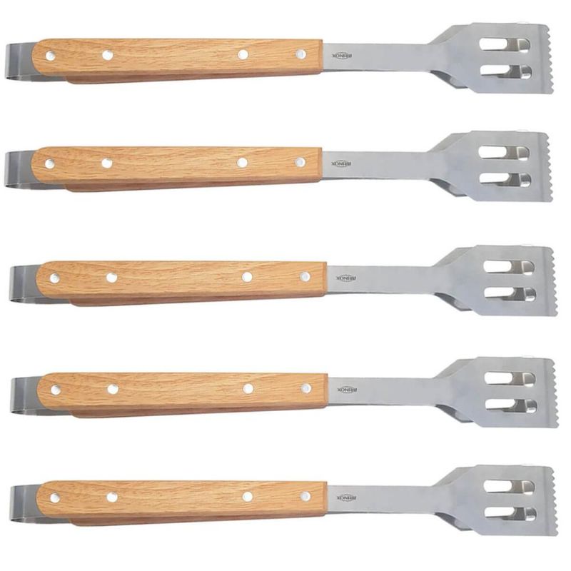 Casa e DecoraçãoUtilidades DomésticasUtensílios de ChurrascoKit 5 Pegadores de Churrasco Inox 40cm Restaurante Churrascaria Grelha Cabo Madeira