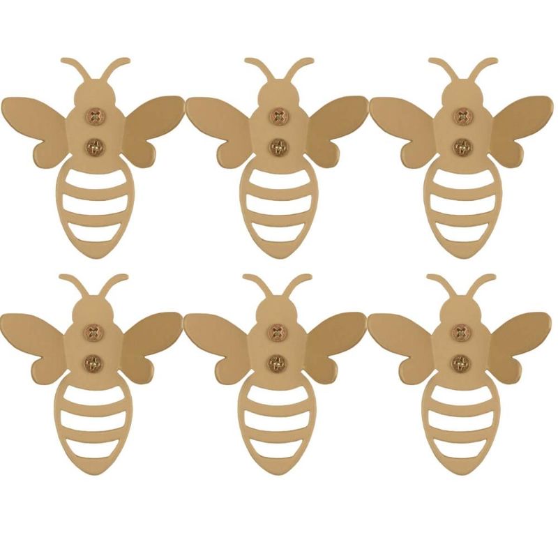 Kit 6 Ganchos Cabideiros Multiuso Abelha Aço Cromado Dourado Organizar Cozinha Lavanderia REF: 7794465466329