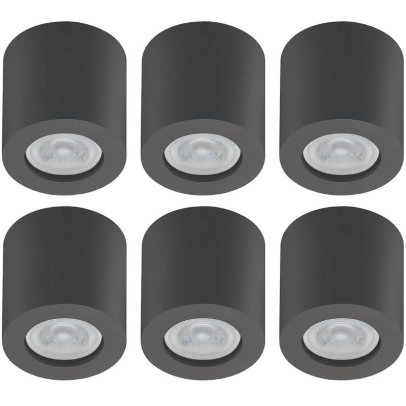 Kit 6 Luminárias de Teto Spots de Sobrepor Bivolt Preto MR16 Redondos Dital Zoom Poliestireno REF: 7794463063520