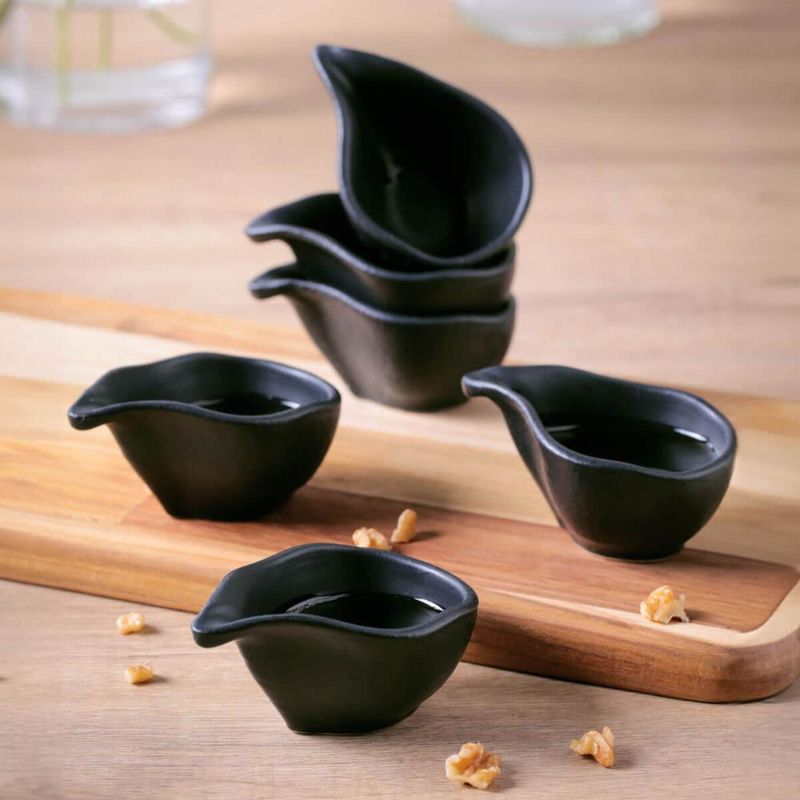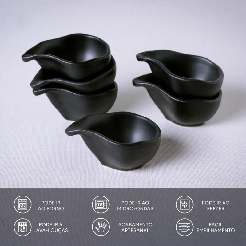 Casa e DecoraçãoUtilidades DomésticasAcessórios de CozinhaKit 6 Molheiras 40ml Cerâmica Oval 8x6cm Orgânico Preto Matte Porto Brasil Caldas Shoyu