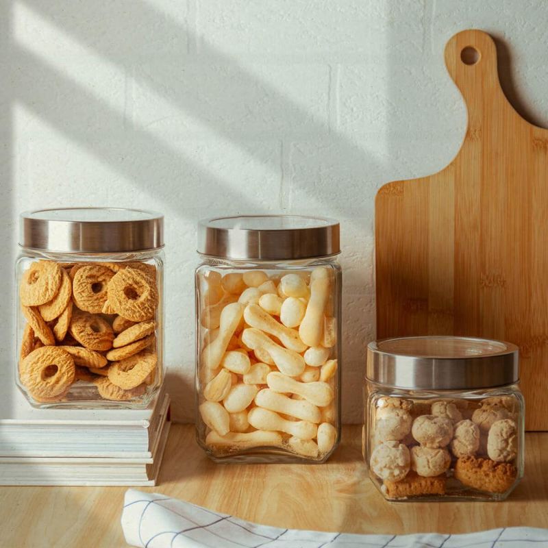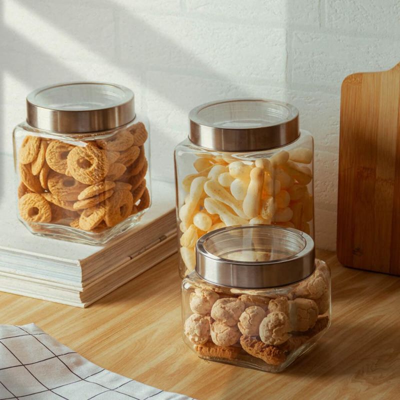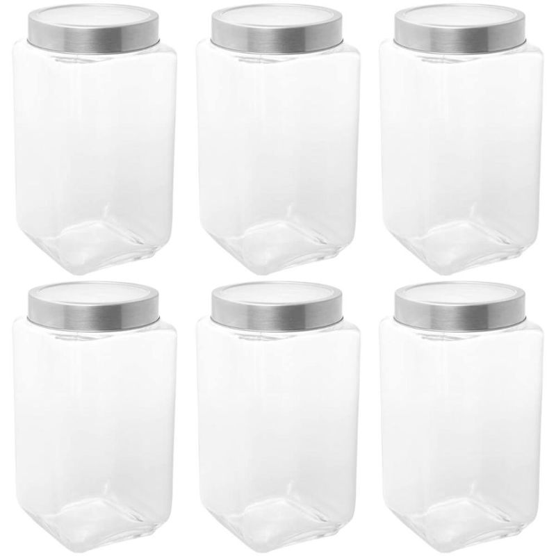 Casa e DecoraçãoUtilidades DomésticasKit 6 Potes de Vidro 1,7L Tampa Metal Lyor Gastro Prata Porta Mantimentos Retangular
