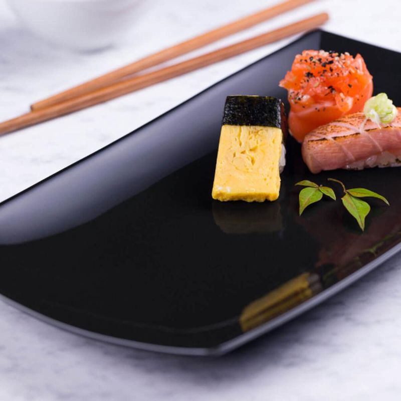 Kit 6 Prato Para Sushi Bandeja Preta Rasa Oriental 22cm Porcelana Germer Sashimi REF: 7798140255550