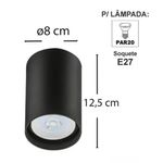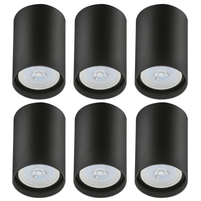 Kit 6 Spots de Sobrepor Zoom Pretos Luminária de Teto Redonda 8x12,5cm Bivolt 1 Lâmpada PAR20 REF: 7794463053453
