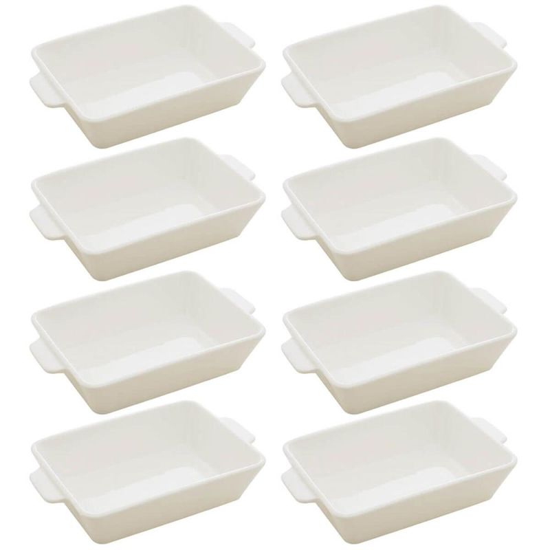 Casa e DecoraçãoUtilidades DomésticasAcessórios para ServirKit 8 Travessas Refratários de Porcelana 23,5x15cm Assadeiras Brancas Buffet Restaurante
