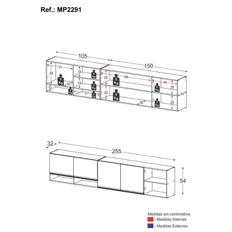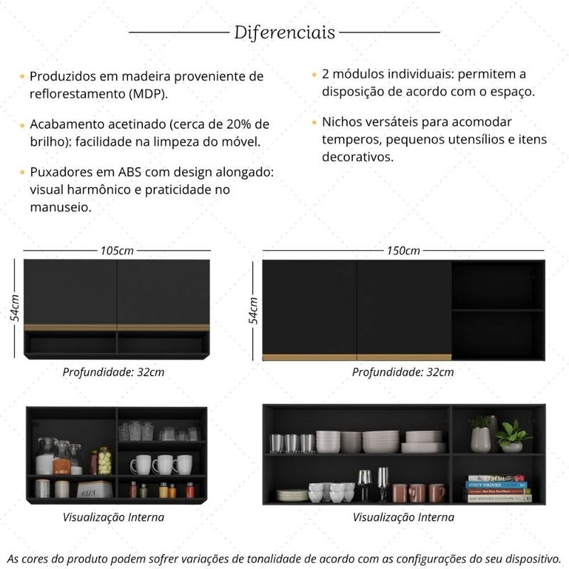 Casa e DecoraçãoMóveisArmário de CozinhaKit Armário Cozinha Aéreo 105cm com Aéreo 150cm Veneza Multimóveis MP2291