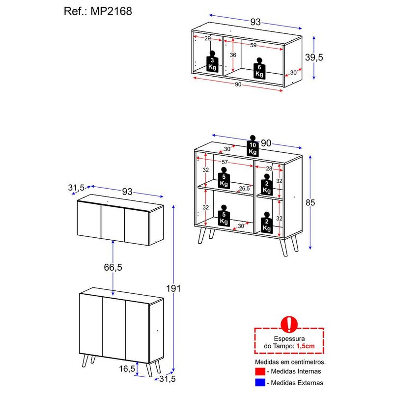 Kit Armário de Cozinha Aéreo e Balcão 3 Portas Retrô Multimóveis MP2168 REF: 764283_Sicredi