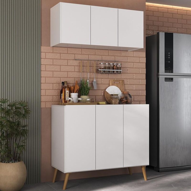 Casa e DecoraçãoMóveisArmário de CozinhaKit Armário de Cozinha Aéreo e Balcão 3 Portas Retrô Multimóveis MP2168