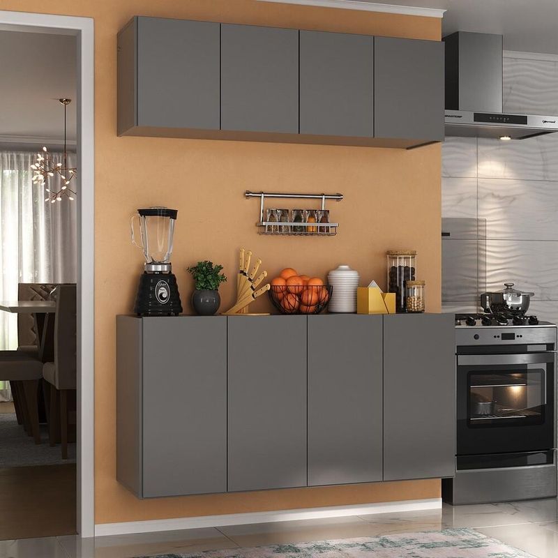 Casa e DecoraçãoMóveisArmário de CozinhaKit Armário de Cozinha Aéreo e Balcão 4 Portas Multimóveis MP2162