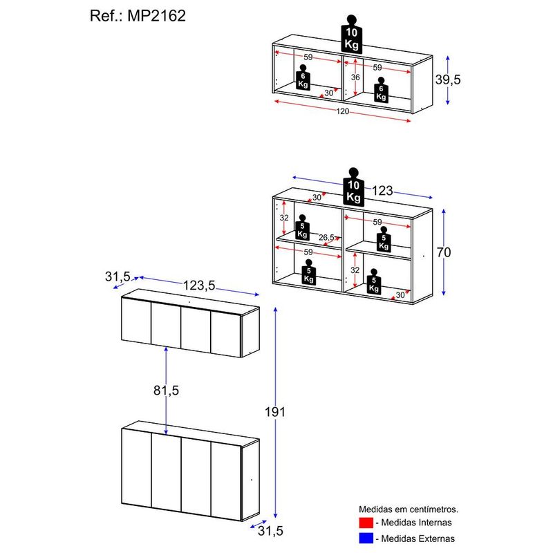 Kit Armário de Cozinha Aéreo e Balcão 4 Portas Multimóveis MP2162 REF: 764638_Sicredi