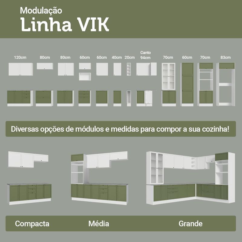 Casa e DecoraçãoMóveisCristaleiraKit Balcão + Cristaleira 70 cm Branco/Verde/Branco Vik Madesa 02