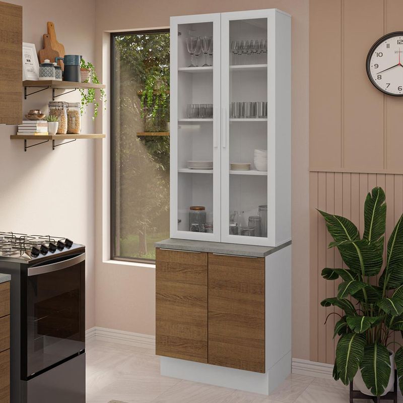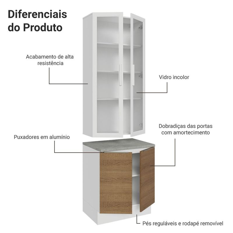 Casa e DecoraçãoMóveisCozinhasKit Balcão + Cristaleira 70cm Branco/Rustic Stella Madesa 01