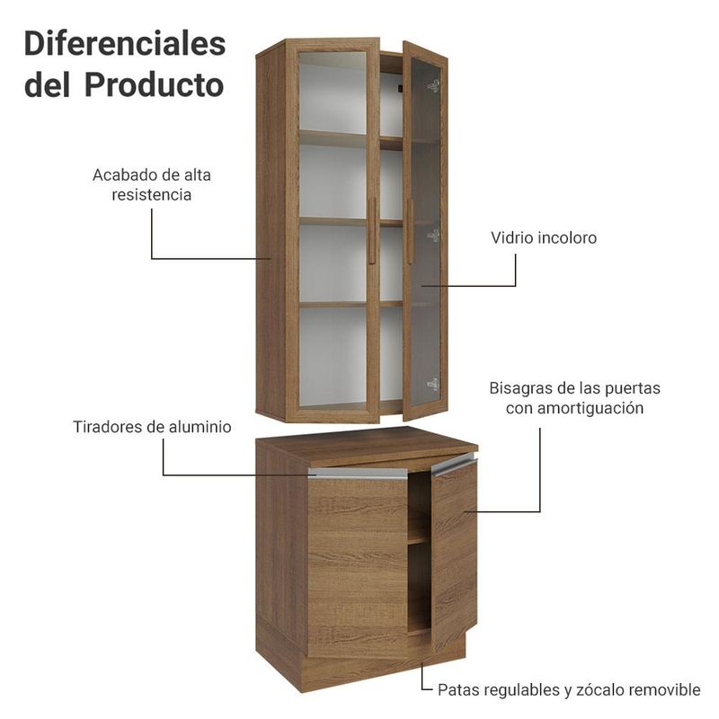 Casa e DecoraçãoMóveisCozinhasKit Balcão + Cristaleira 70cm Rustic Glamy Madesa 01