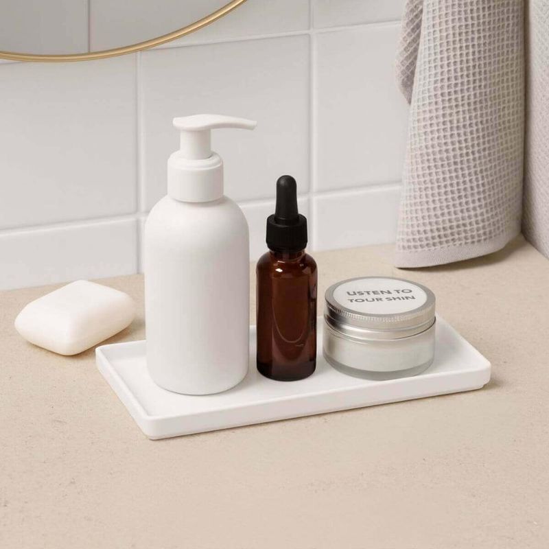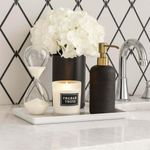 Casa e DecoraçãoUtilidades DomésticasAcessórios de BanheiroKit Bandeja Decorativa Branca e Porta Escova de Dentes Cinza Plástico Banheiro Lavabo