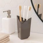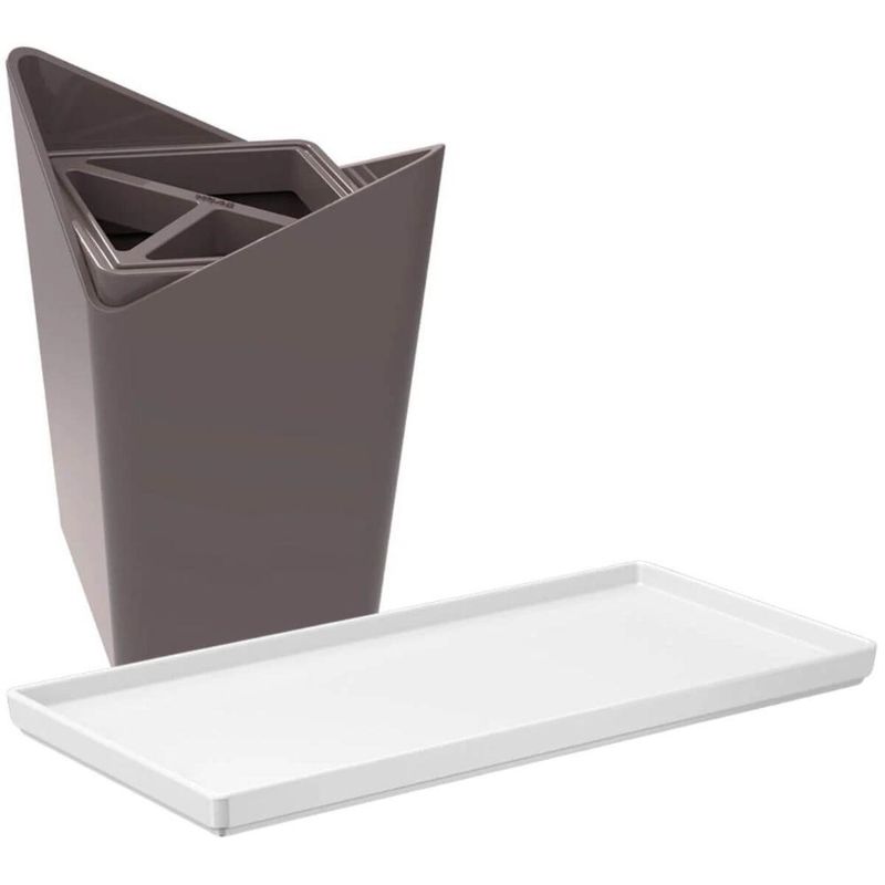 Kit Bandeja Decorativa Branca e Porta Escova de Dentes Cinza Plástico Banheiro Lavabo REF: 7794465516642