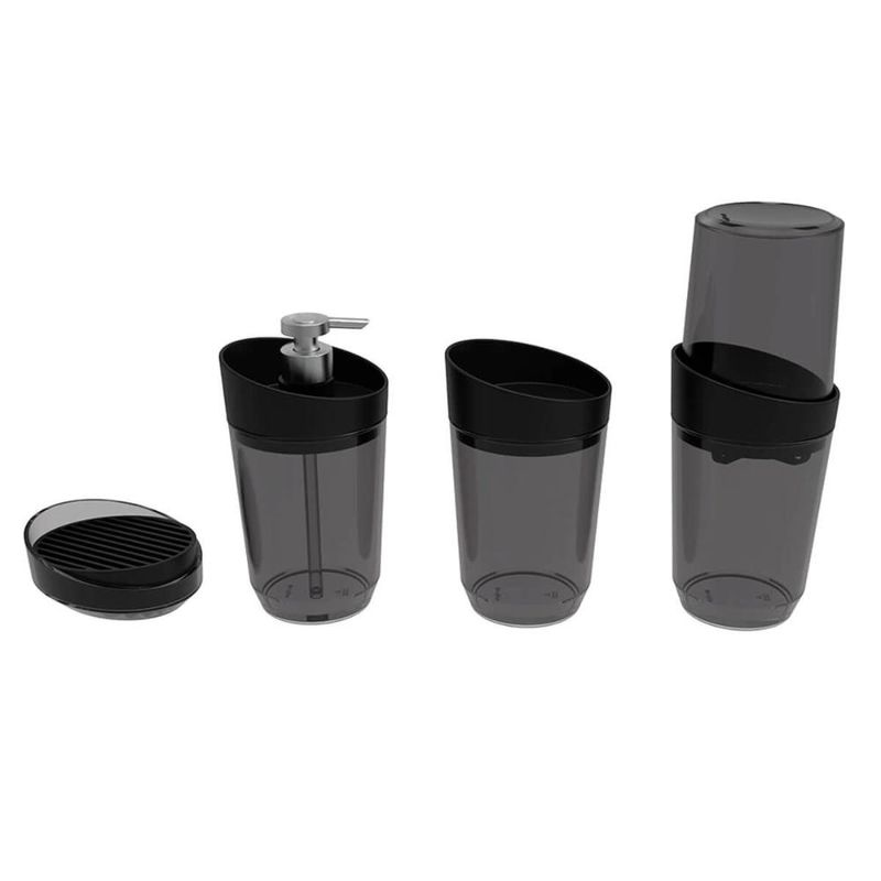 Kit Banheiro Crippa 4 Peças Porta Escova Porta Sabonete Líquido Porta Algodão e Saboneteira Fumê REF: 7899868304794