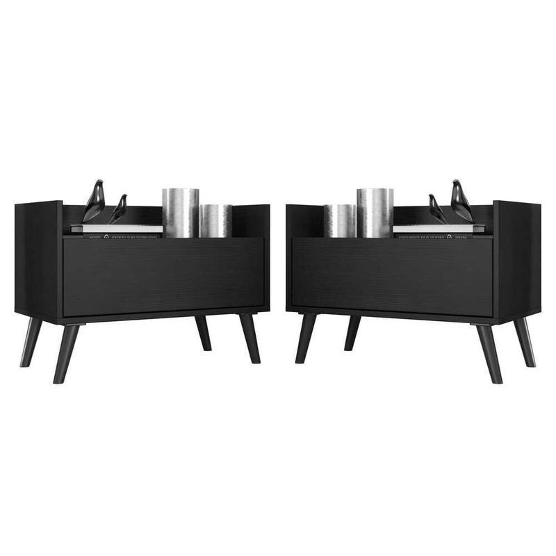Casa e DecoraçãoMóveisCabeceiraKit c/ 2 Mesas de Cabeceira 60 cm c/ Pés Retrô Multimóveis Preta