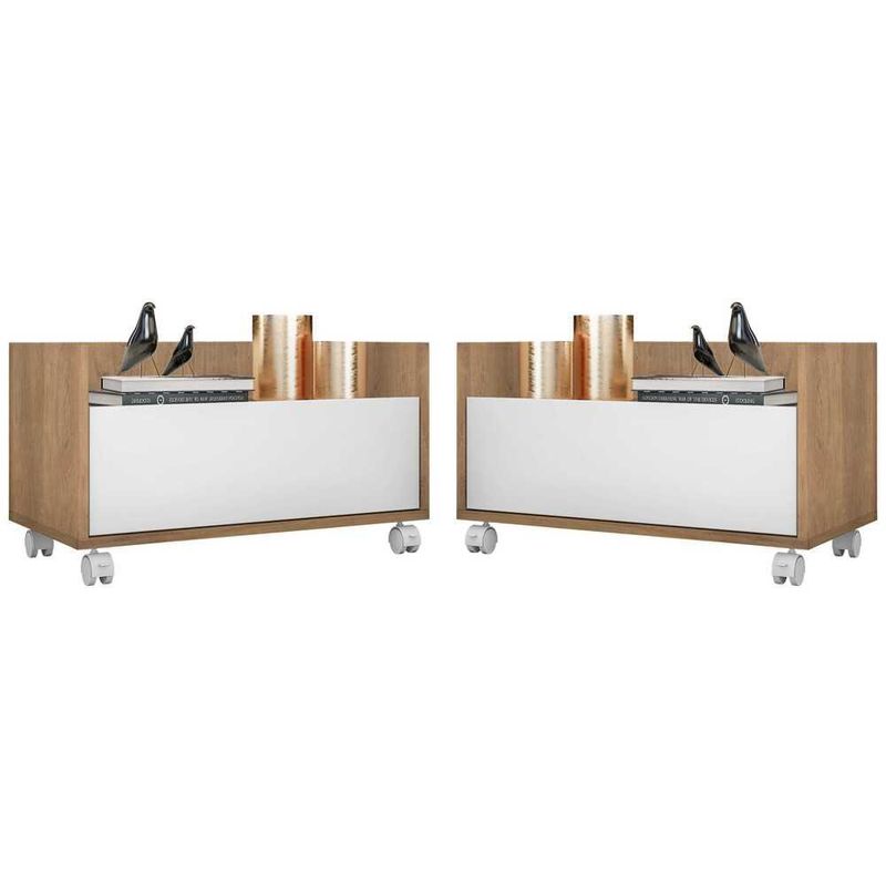 Kit c/ 2 Mesas de Cabeceira 80 cm c/ Rodízios Multimóveis Rustic/Branco REF: 571682_Sicredi