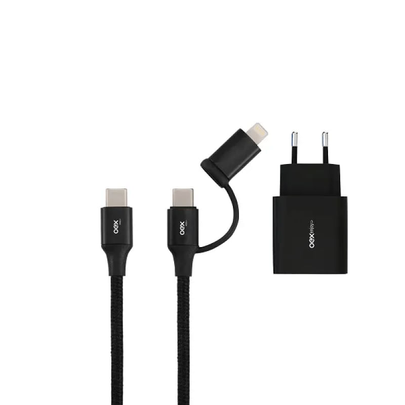 Kit Cabo 2 Em 1 Typec/Type C+Lightning Tomada Cg207 Preto Oex Enjoy REF: 227628_Sicredi