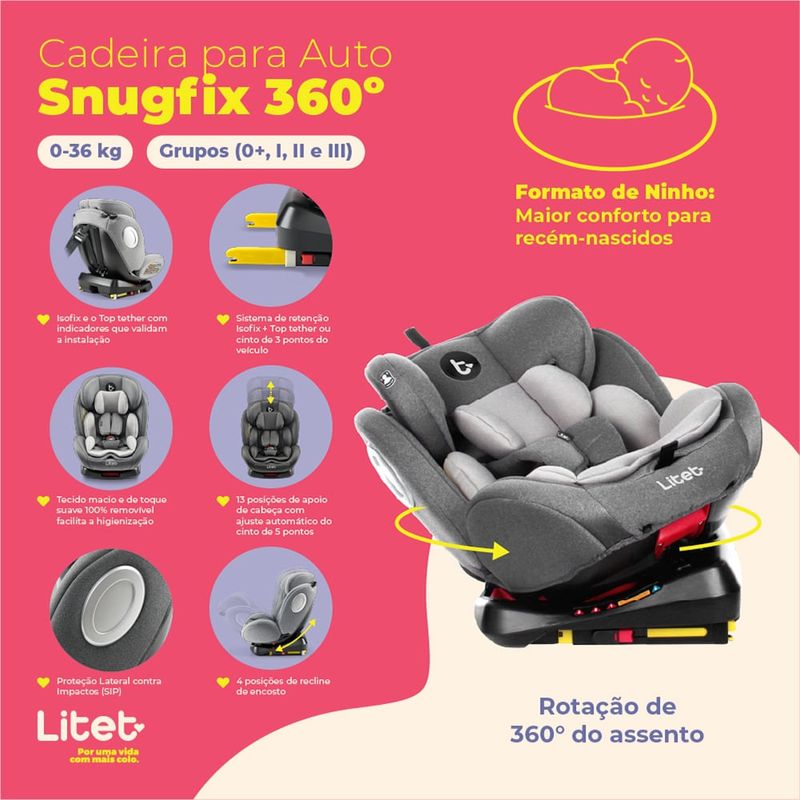 Kit Cadeirinha Infantil Para Carro 0-36 Kgs Snugfix Cinza Litet + Rastreador Bluetooth Multi MTag BB454K BB454K REF: 898525_Sicredi