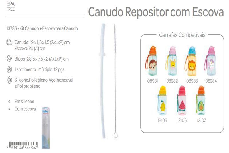 Kit Canudo Repositor BUBA em Silicone com Escova - Animal e Frutti REF: 7908103737867