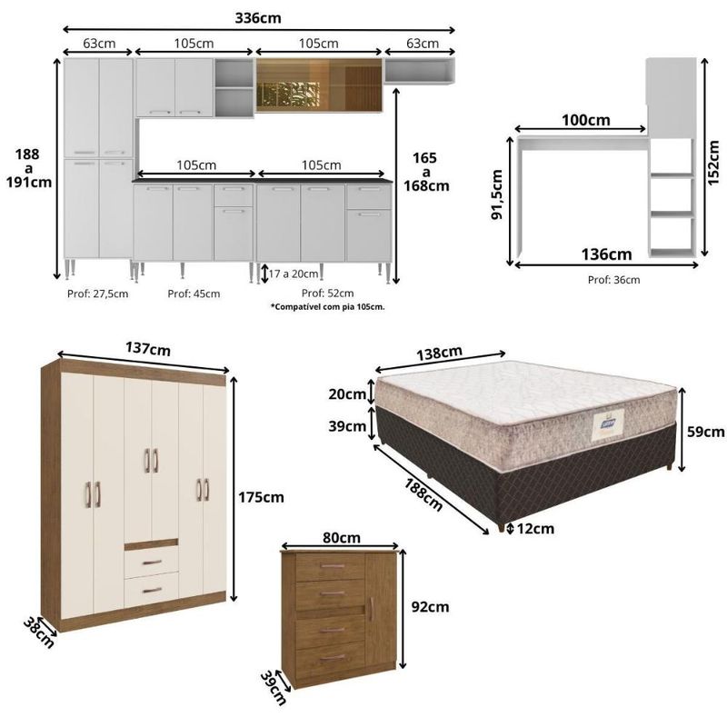Casa e DecoraçãoMóveisCozinhasKit Casa Completa Armário Cozinha/Guarda-Roupas Casal/Cômoda/Cama Box/Colchão Multimóveis CR60011
