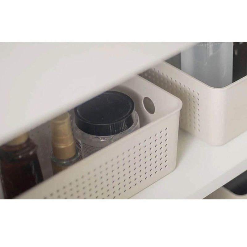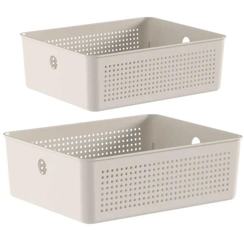 Kit Cestos Multiuso 5,4L e 12L Flow Bege Caixas Organizadoras Closet Lavanderia Ou REF: 7798139194518