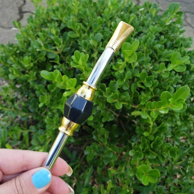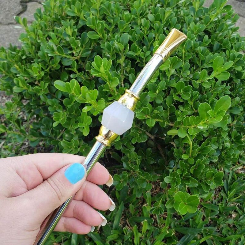Kit Chimarrão Cuia Porongo Base e Bomba Inox 25cm Mil Furos Rosca Pedra Ágata Mate REF: 7794465566074