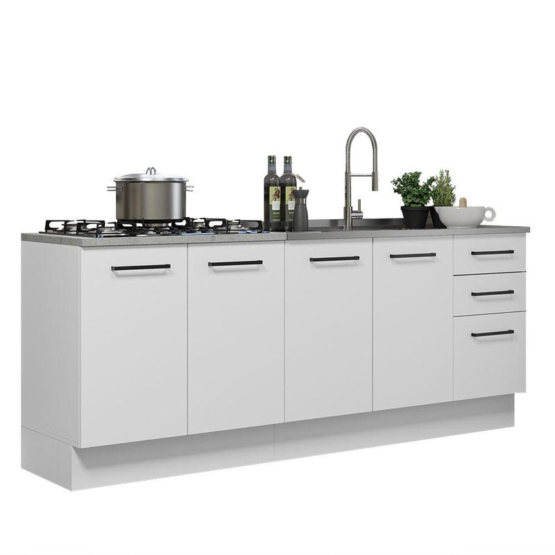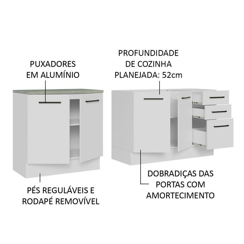 Kit com 2 Balcões de Cozinha Madesa Agata 3 Gavetas 4 Portas (Sem Tampo e Pia) - Branco REF: 515028_Sicredi