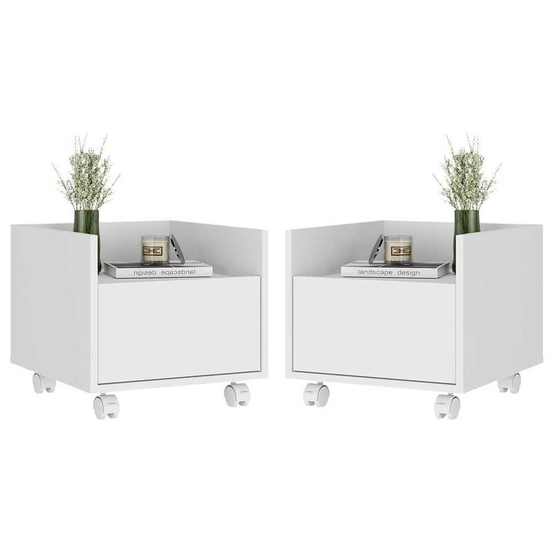 Casa e DecoraçãoMóveisCabeceiraKit com 2 Mesas de Cabeceira 40 cm com Rodízios Multimóveis MP4045 Branca