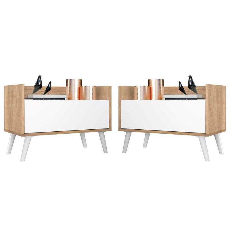 Casa e DecoraçãoMóveisCabeceiraKit com 2 Mesas de Cabeceira 80cm Retrô Multimóveis V4002