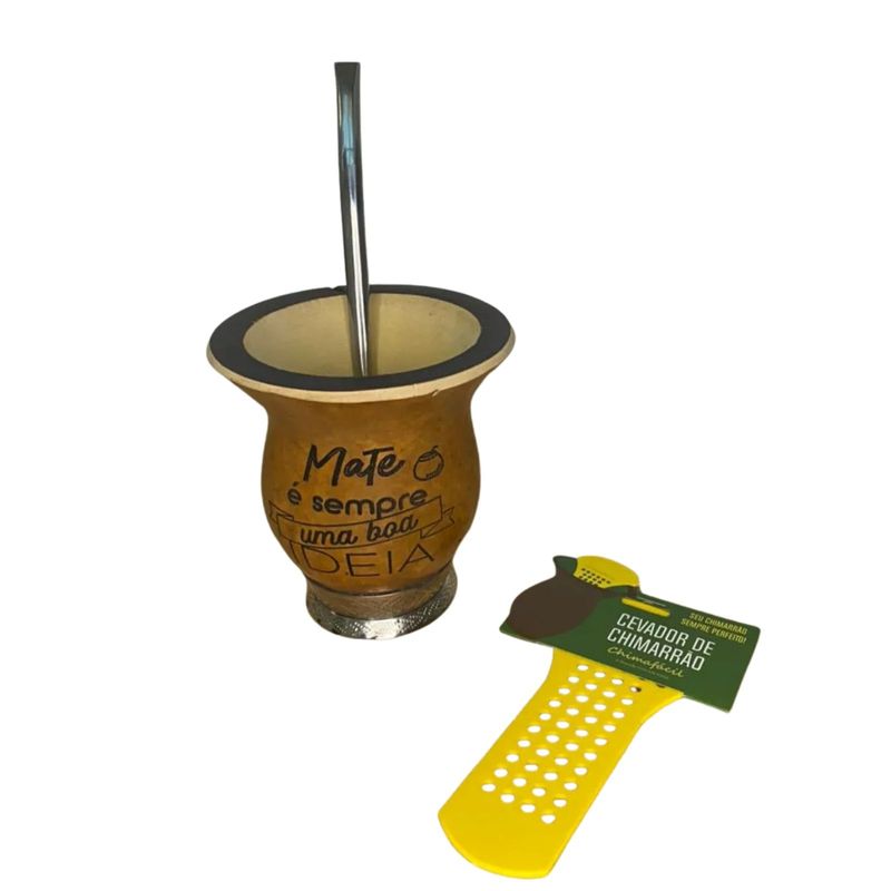 Casa e DecoraçãoUtilidades DomésticasAcessórios de CozinhaKIT Cuia de Chimarrão Bago de Touro com pé, Bomba e Chimafácil