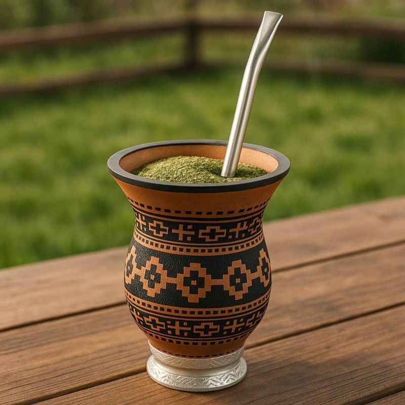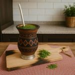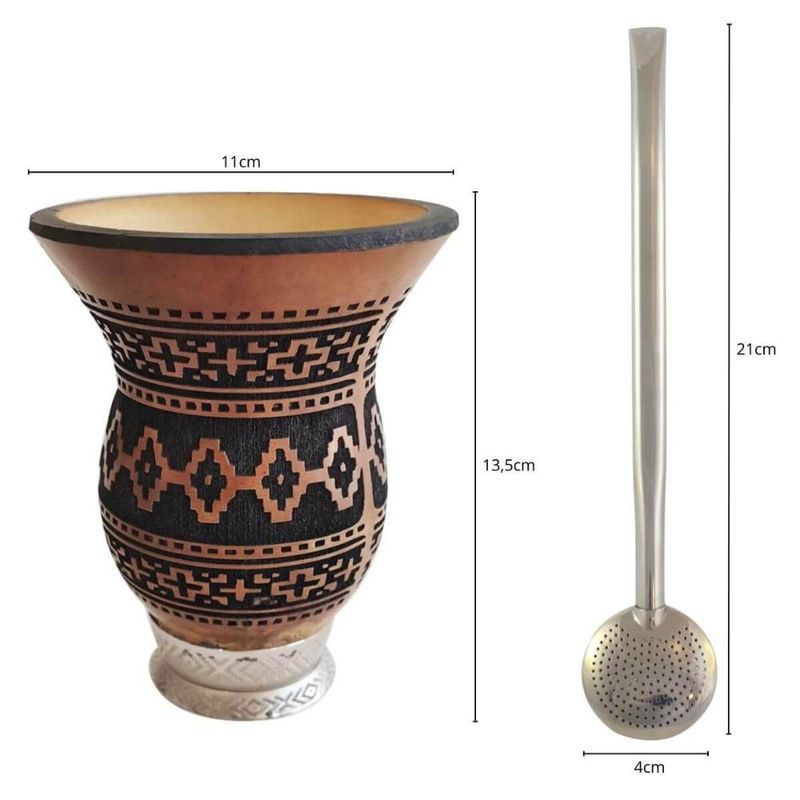 Casa e DecoraçãoUtilidades DomésticasAcessórios de CozinhaKit Cuia de Porongo Natural com Pé e Bomba Inox Lisa 21cm para Chimarrão Tererê