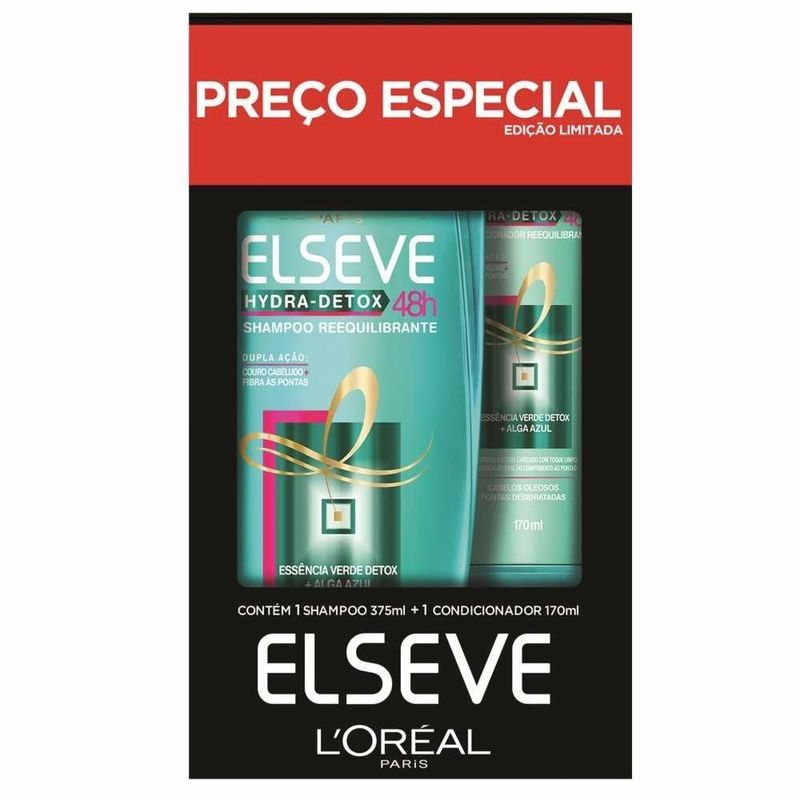Beleza e SaúdeBelezaCuidados com o cabeloKit Elseve Hydra Detox Shampoo 375ml + Condicionador 170ml