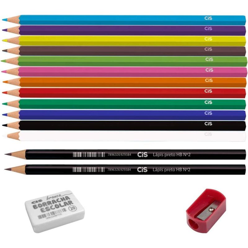Kit Escolar Lápis de Cor+Borracha+Apontador+Lápis Preto -Cis REF: 664407_Sicredi