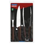 Kit Garfo Trinchante Pegador Faca Churrasco 8'' Tramontina Plenus 3 Peças Marrom REF: 7891112275294