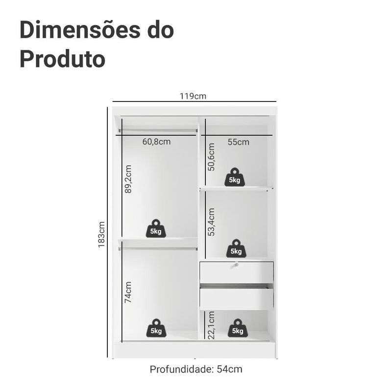 Casa e DecoraçãoMóveisGuarda-roupa e roupeirosKit Guarda-Roupa Infantil Max 2 Portas de Correr + Cômoda Branco Madesa