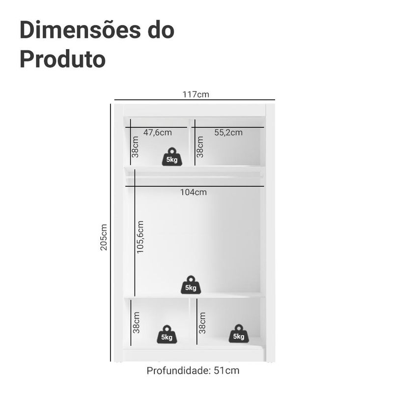 Casa e DecoraçãoMóveisGuarda-roupa e roupeirosKit Guarda-Roupa Infantil Milano 2 Portas de Correr com Espelho + Cômoda Branco Madesa