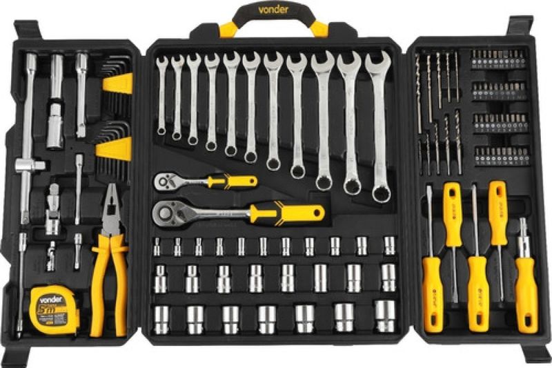 Kit Jogo Ferramentas Maleta 128 Peças Soquetes Chaves Vonder REF: 7893946691868