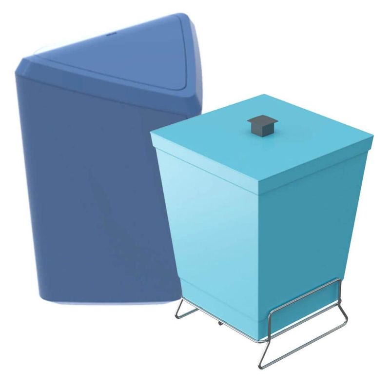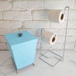 Kit Lixeira Basculante 12L Lixeira Suporte Cromado 6,5L Azul Plástico Banheiro Lavabo REF: 7794465576219