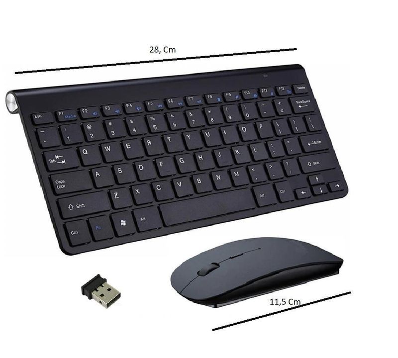 Eletrônicos e TecnologiaInformáticaAcessórios e PeriféricosKit Mini Teclado E Mouse Wireless Slim Plug Play 2.4ghz - Preto