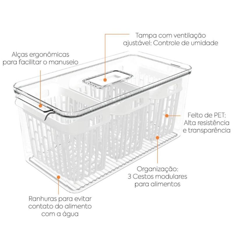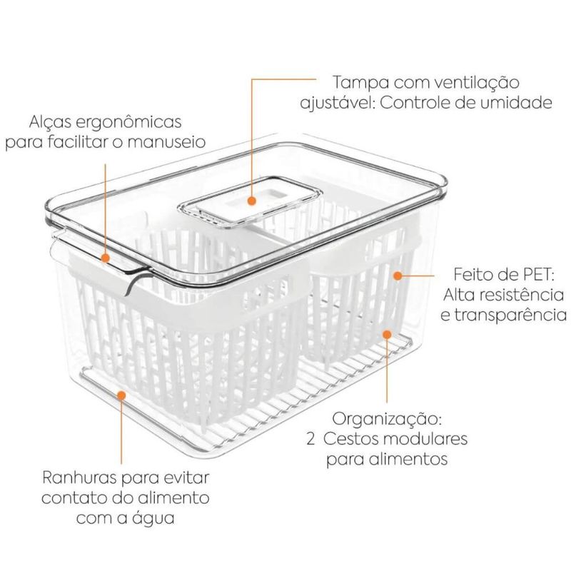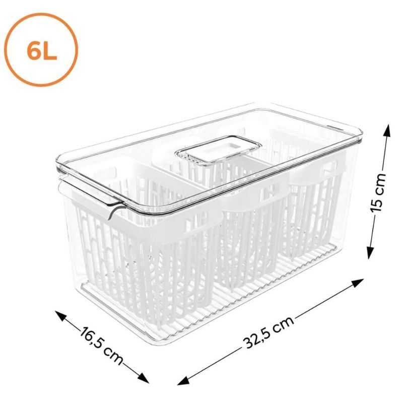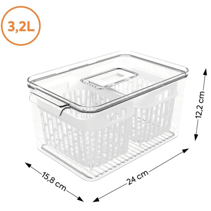 Kit Organizador de Geladeira 6L e 3,2L Cestos Internos Coza Dry Escorredor Frutas Vegetais REF: 7794464004096
