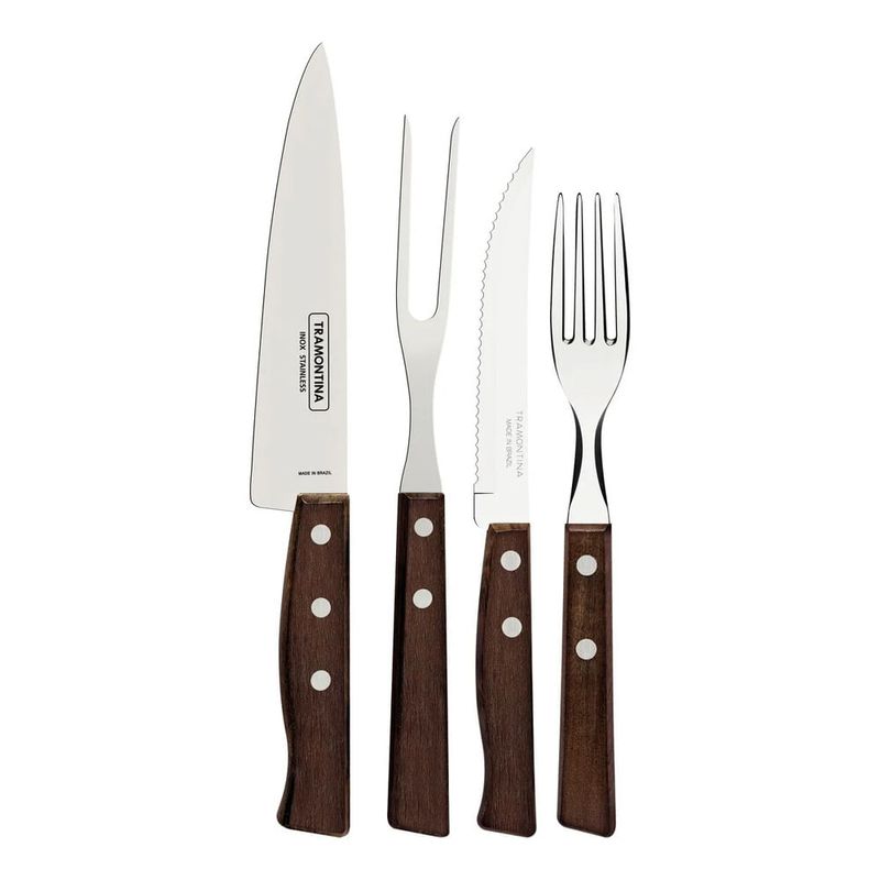 Casa e DecoraçãoUtilidades DomésticasUtensílios de ChurrascoKit para Churrasco 14 peças em Inox e Cabos de Madeira - Tramontina
