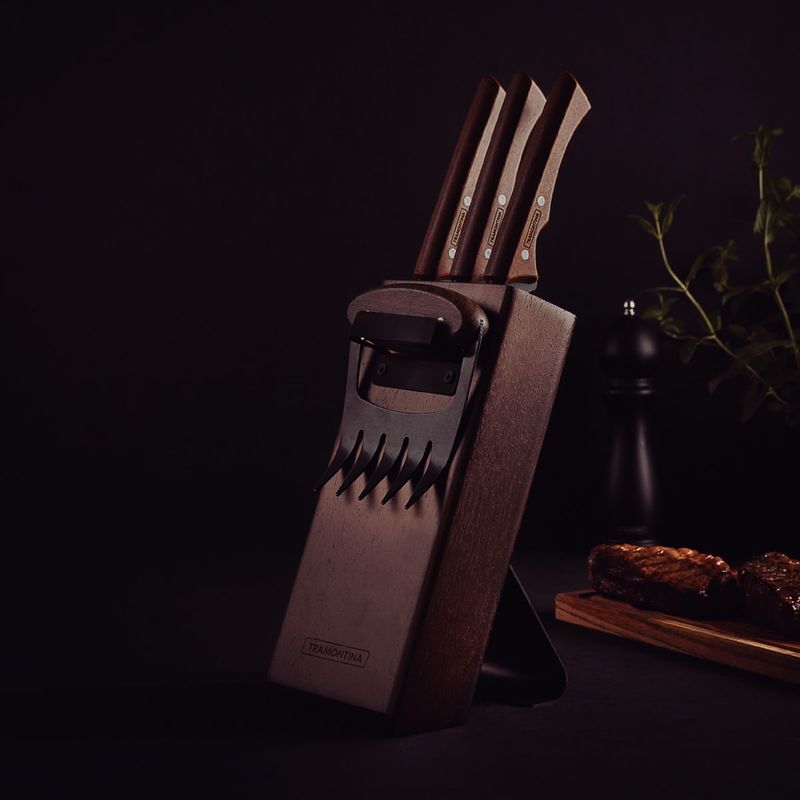 Kit para Churrasco Tramontina Black 5 Peças Aço Inox Escurecido e Cabos de Madeira REF: 7891112324442