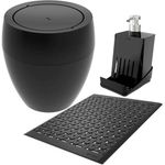 Kit Pia Cozinha Lixeira 9L Grade Protetora Porta Detergente Plástico Preto 3pçs Crippa Smart S REF: 7794462323656