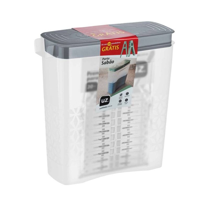 Casa e DecoraçãoUtilidades DomésticasOrganização e ArrumaçãoKit Porta Sabão UZ Cinza UZ1929 e 20 Prendedores Multiuso