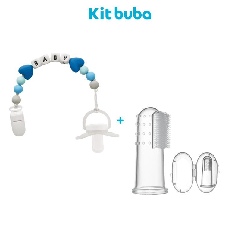 ModaInfantilAcessóriosKit Prendedor Chupeta Silicone + Escova Massageador Gengiva Silicone Buba