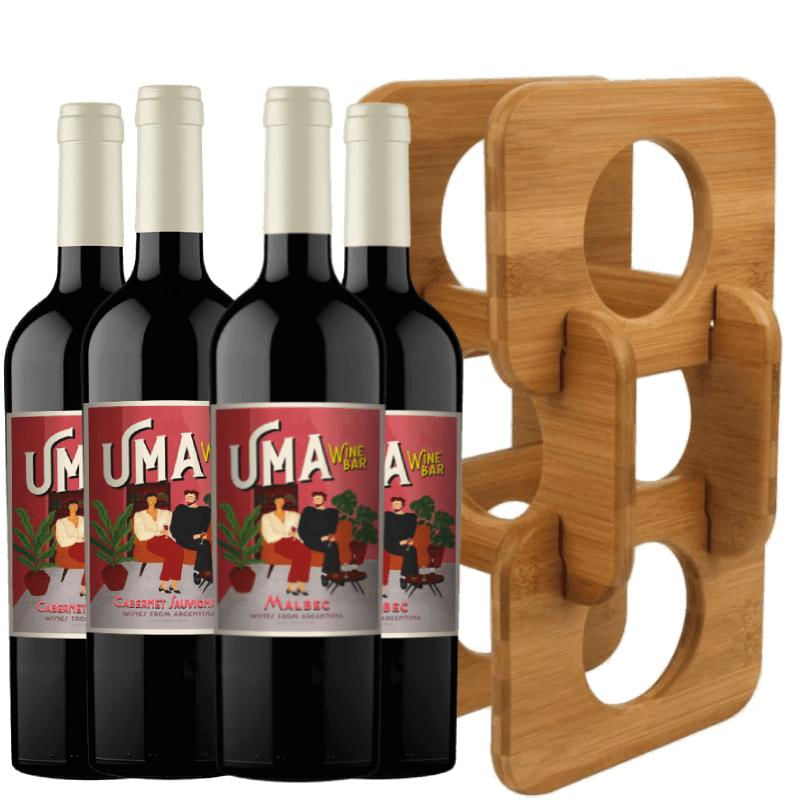 Kit Presente 4 Vinhos Argentino + Adega Bambu 20CM REF: 818188_Sicredi
